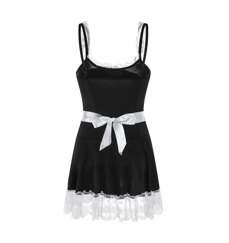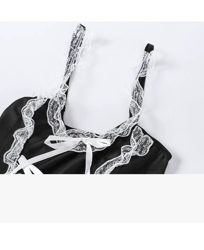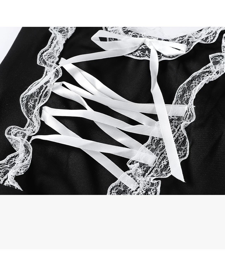 Váy ngủ Basic maid dress S213 ( Không gọng - Không mút), dáng xoè nhẹ phong cách hầu gái các nàng, chất vải thun cotton phối ren.