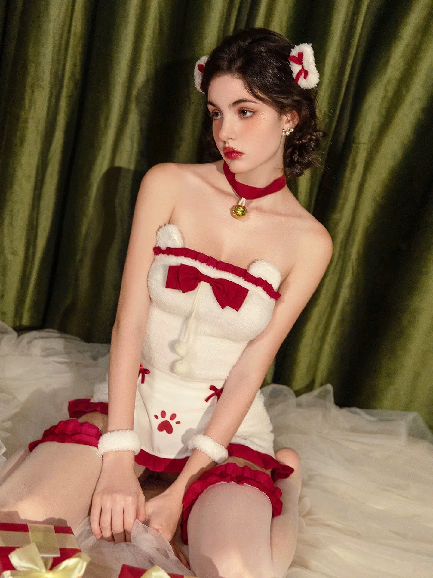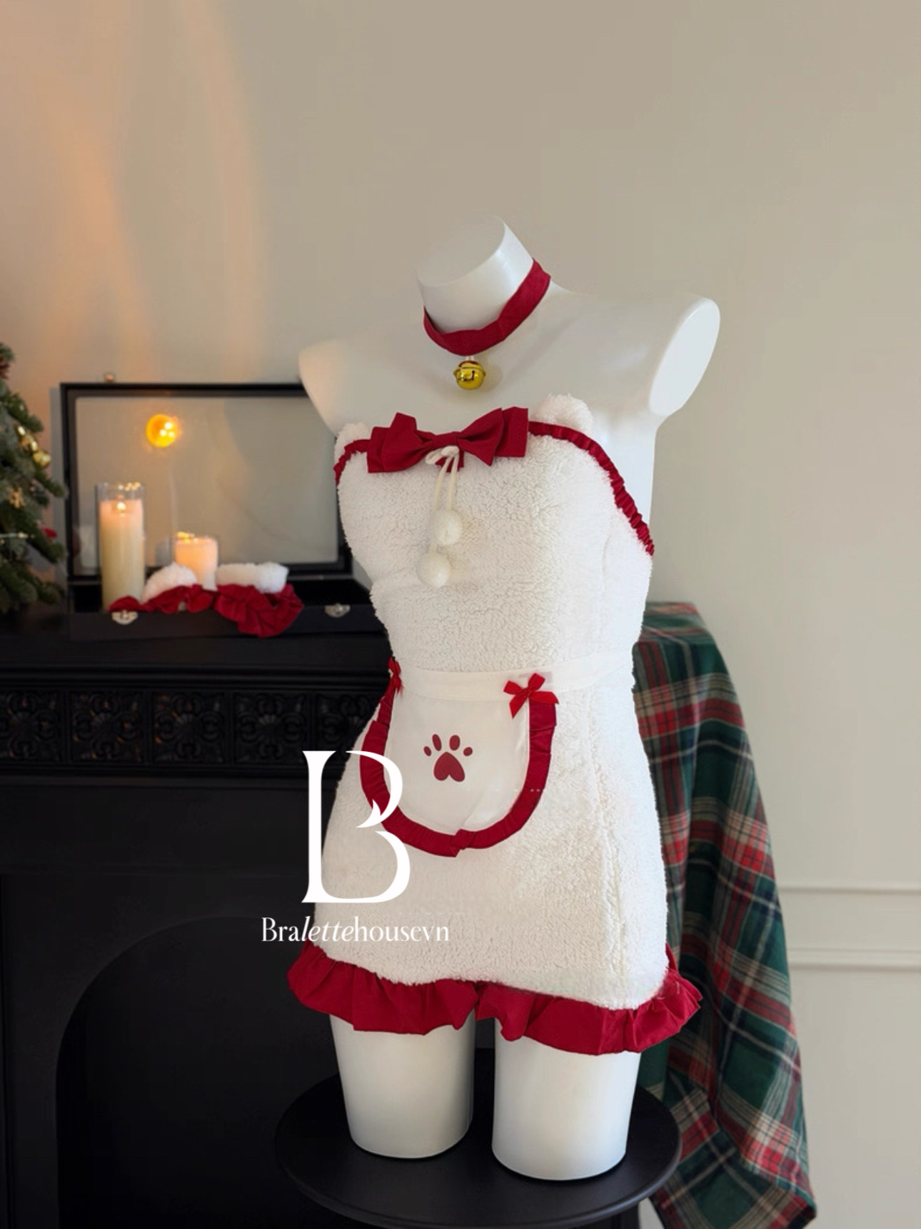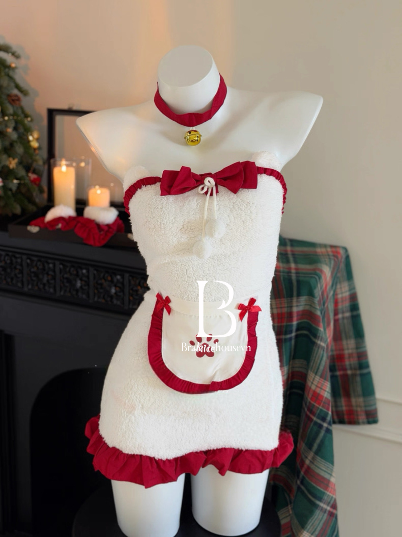 Set gồm đầm, 2 kẹp gấu, tạp dề tay gấu, 2 vòng đùi, 01 choker (KHÔNG kèm tất, vớ hoặc phụ kiện khác phối cùng).
