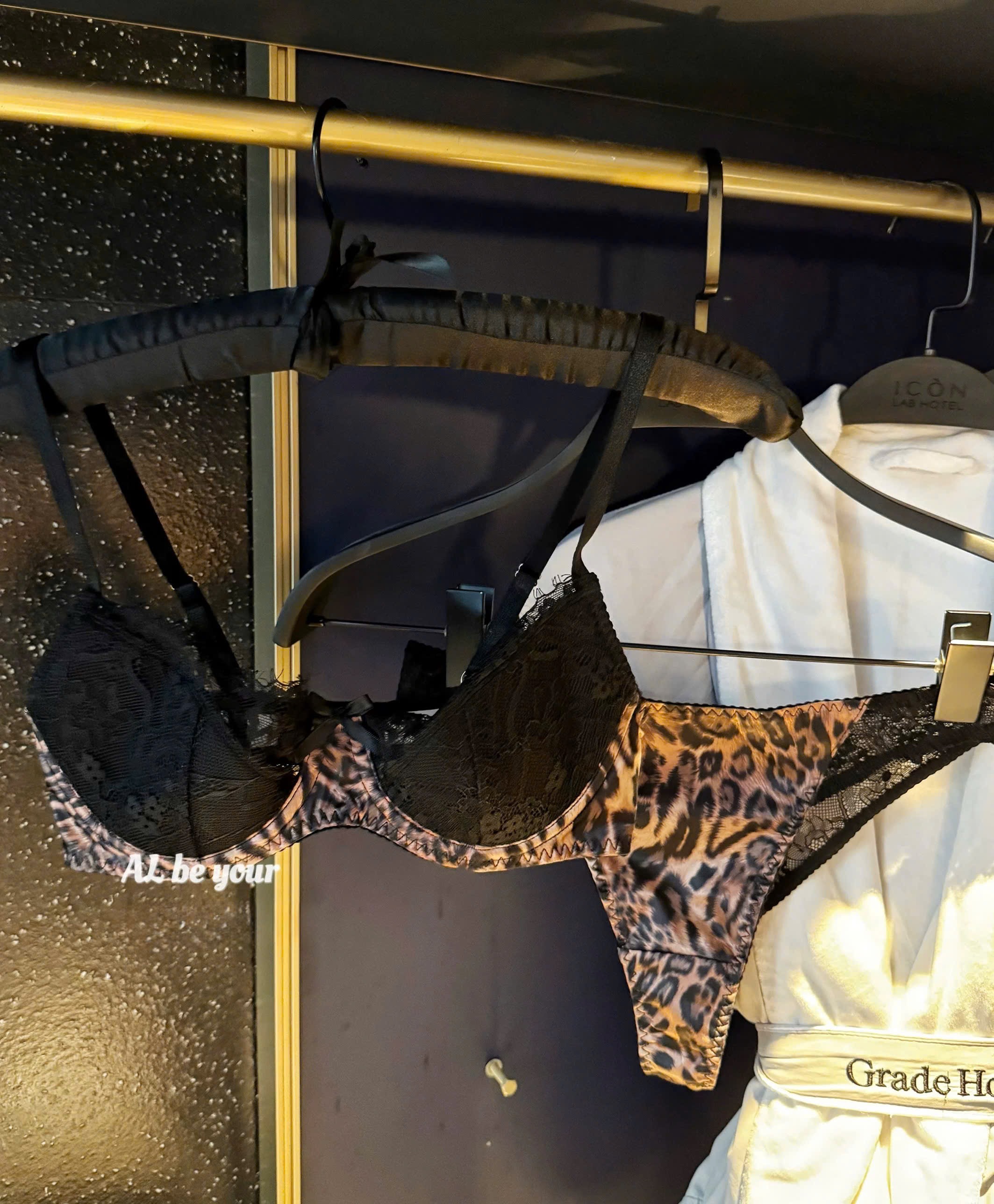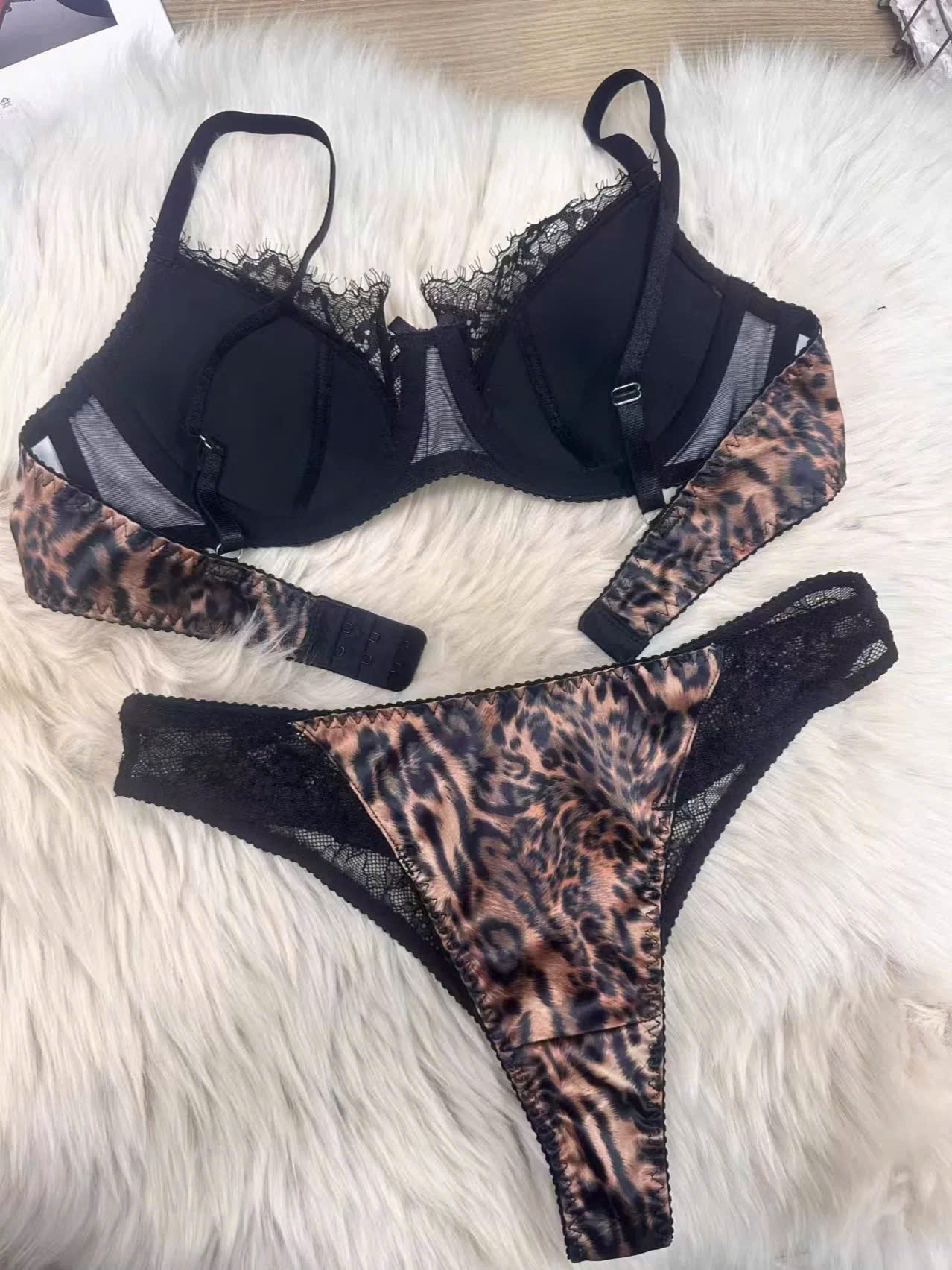 Beno Set S2590 nổi bật với họa tiết da beo cá tính kết hợp cùng ren mềm mại tạo nên sự cân bằng hoàn hảo giữa chất hoang dại và nét nữ tính gợi cảm