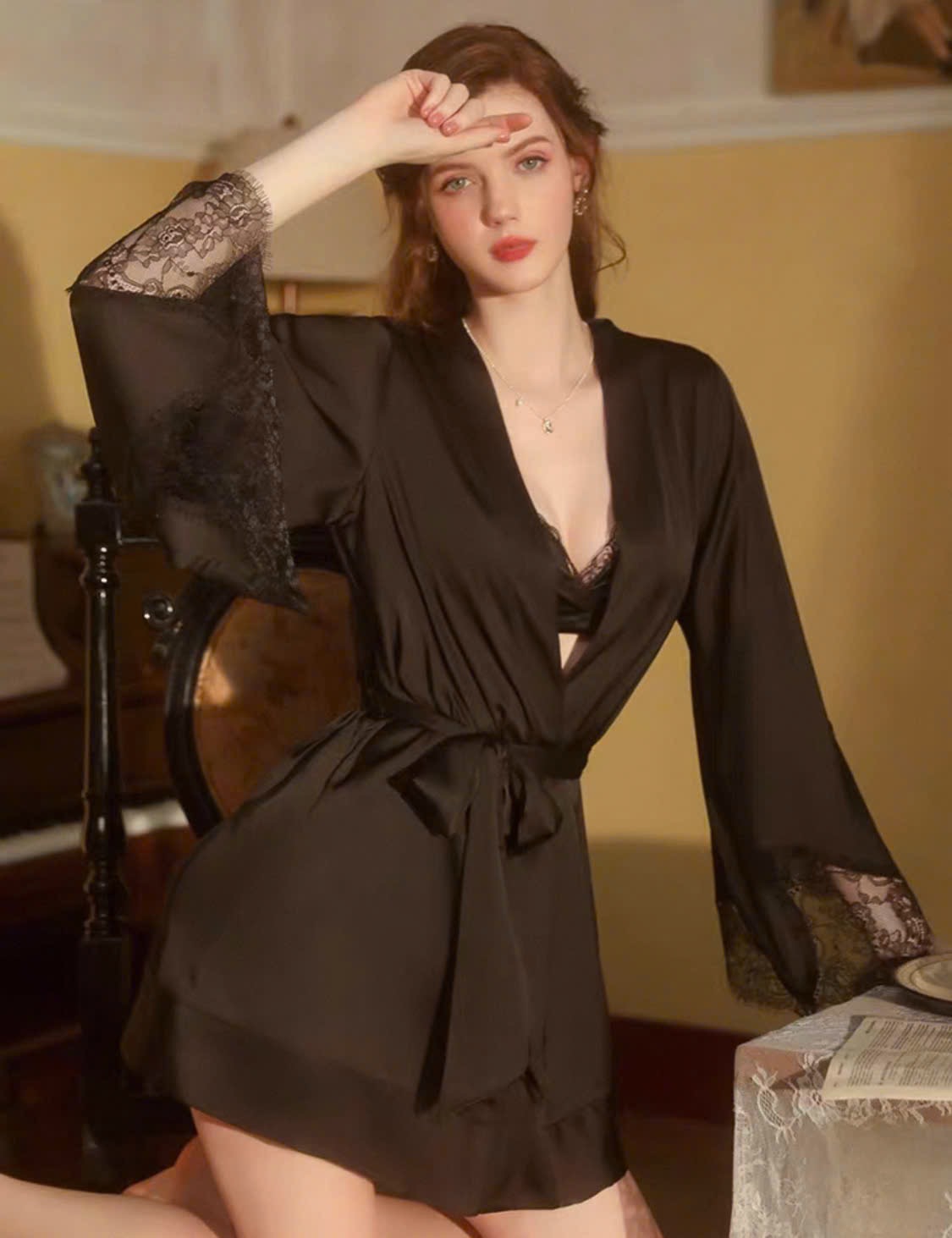 Điểm nhấn ở phần lưng khoét sâu, kết hợp cùng chi tiết ren phối quyến rũ, chính là "cú chốt" gợi cảm khiến ánh nhìn khó lòng dứt ra. Từng đường nét đều được chăm chút để Carmen không chỉ là một chiếc váy ngủ, mà còn là một tuyên ngôn nữ tính đầy nghệ thuật.