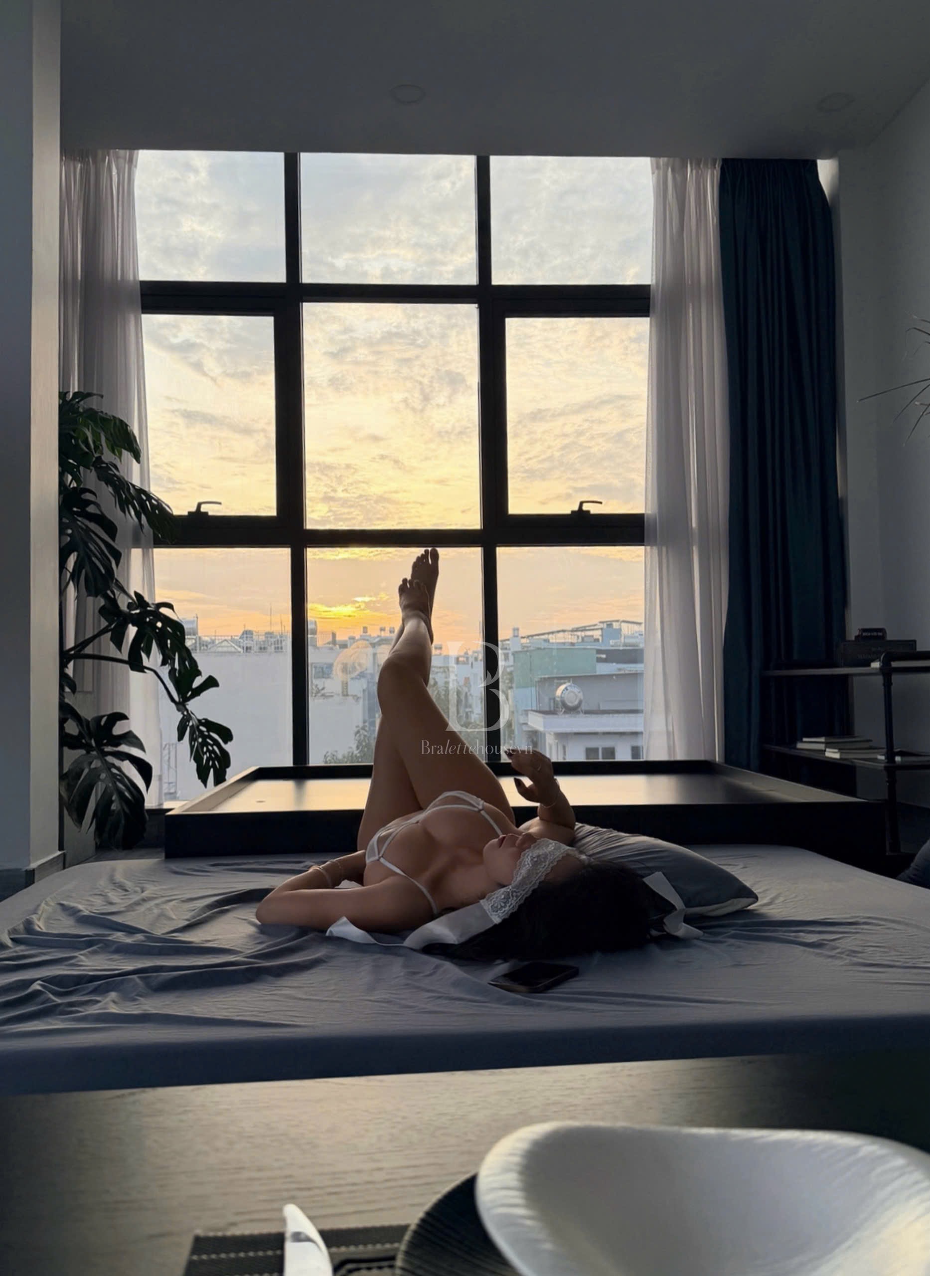 Chất liệu xuyên thấu cao cấp ôm nhẹ làn da, phô diễn đường cong một cách đầy nghệ thuật. Từng chi tiết đều được chăm chút để mang lại cảm giác mong manh, nữ tính nhưng vẫn toát lên sức hút khó cưỡng – đủ khiến ánh nhìn say đắm ngay từ khoảnh khắc đầu tiên.