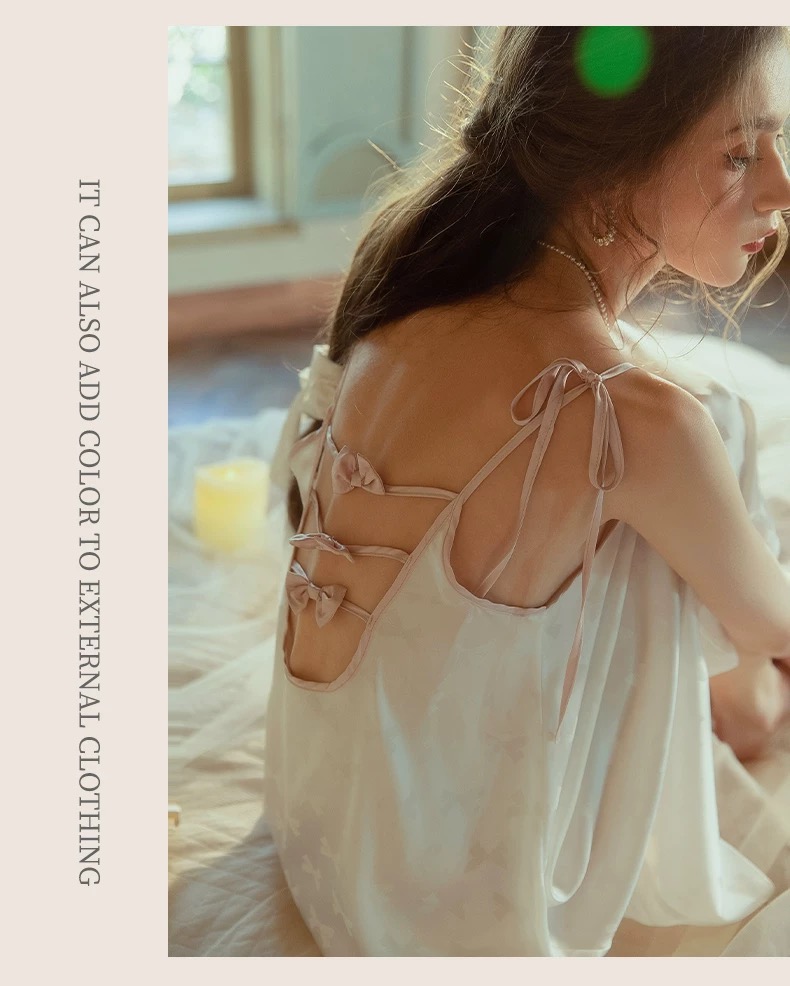 Thiết kế: Dáng babydoll, mặc được 2 kiểu, đính nơ, dây cột