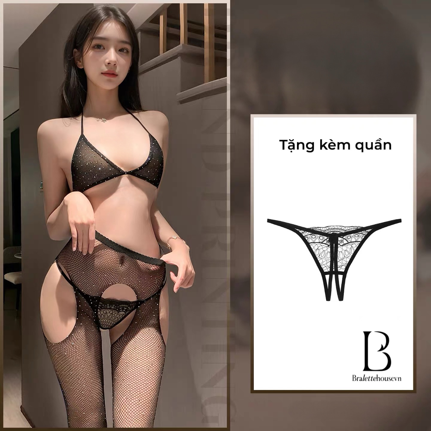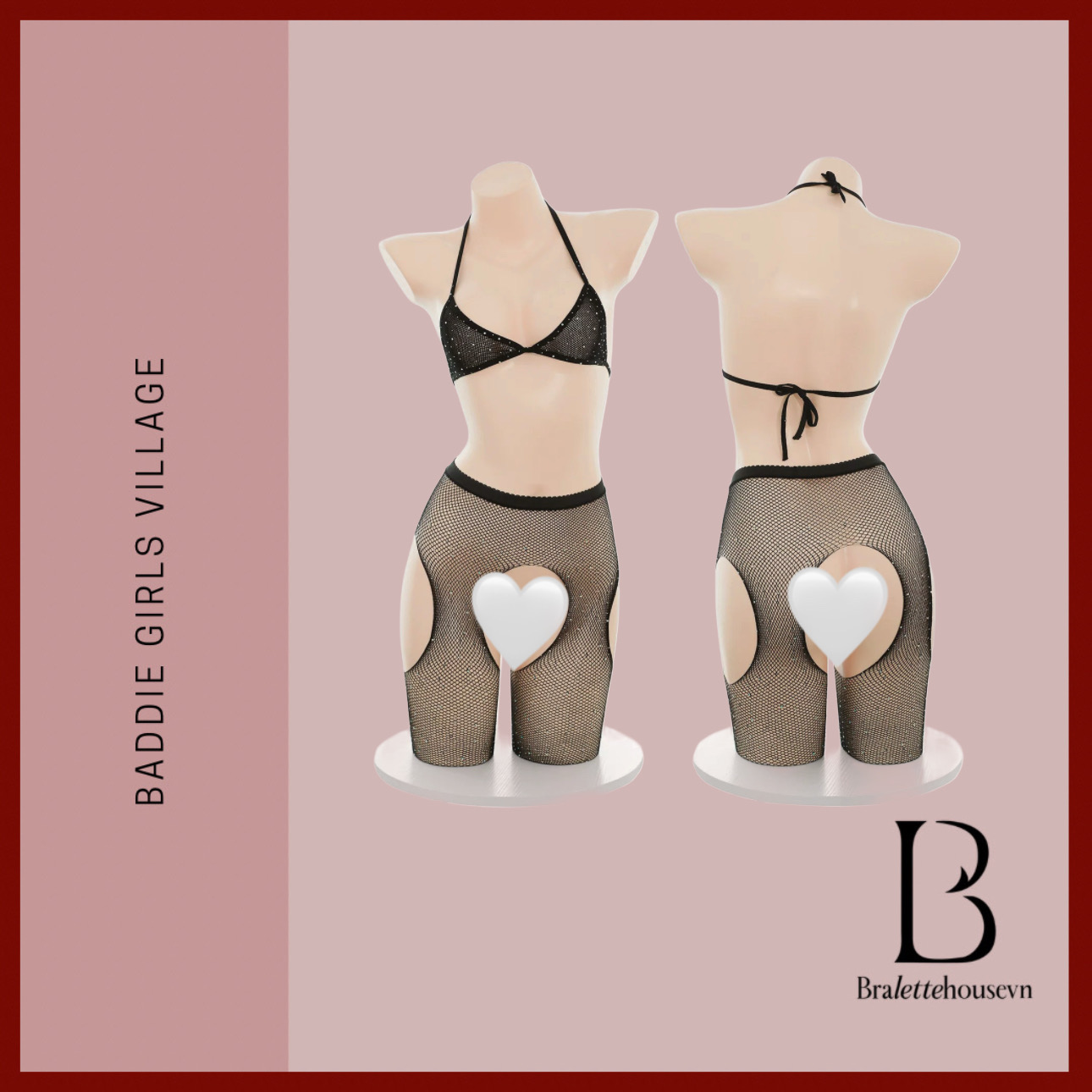 Set gồm bộ đồ tất lưới lấp lánh + quần lọt khe (KHÔNG kèm găng tay).