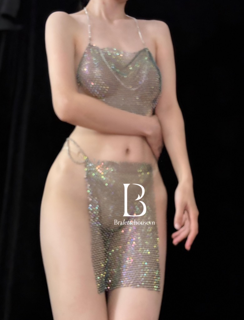 Chất liệu xuyên thấu lấp lánh siêu gợi cảm, giúp nàng nổi bật trong ánh đèn.
