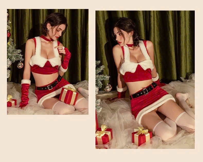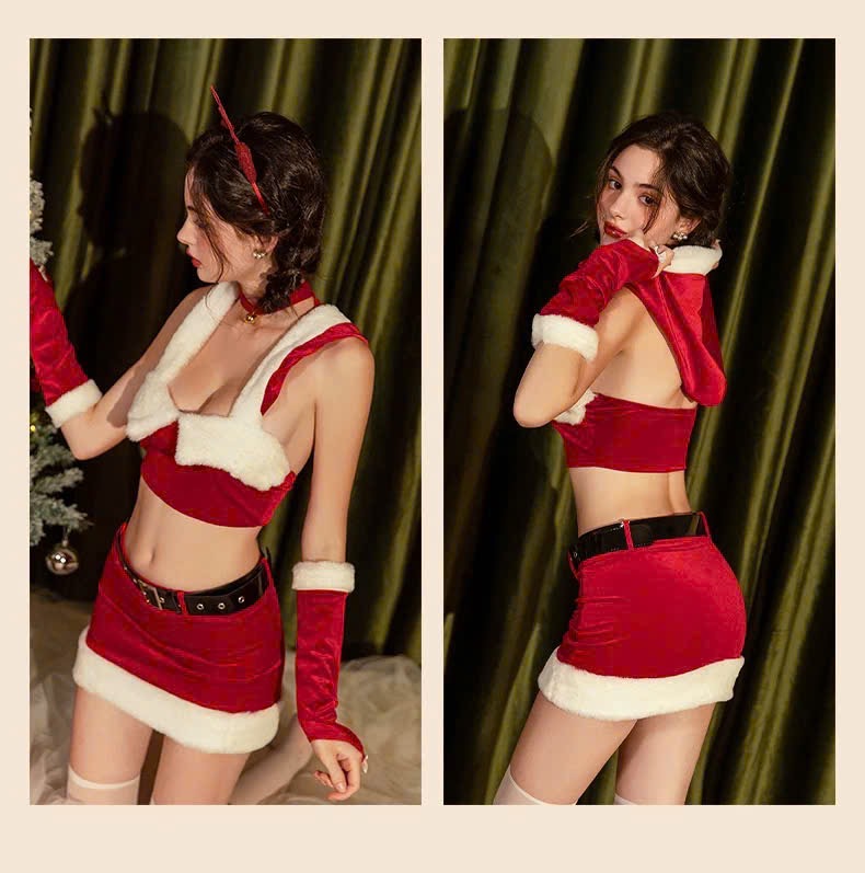 Set gồm áo, váy, nón, 2 găng tay, dây nịt (KHÔNG kèm tất, vớ hoặc phụ kiện khác phối cùng).