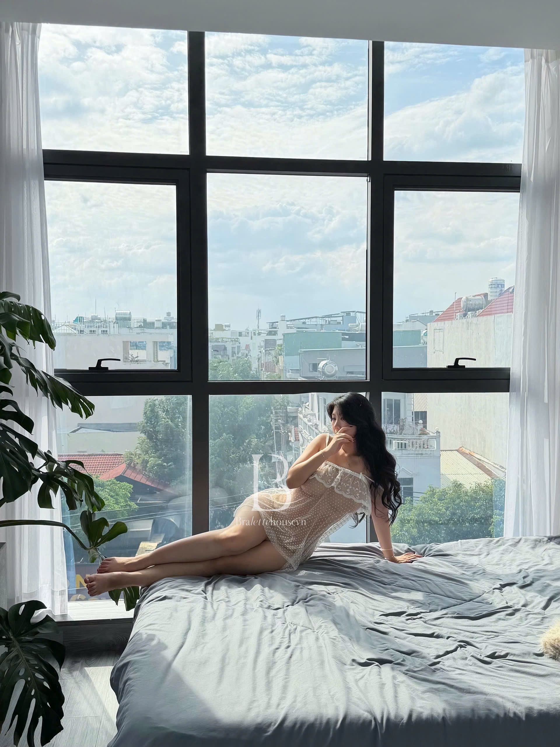 Chất liệu voan xuyên thấu chấm bi mỏng nhẹ như sương, ôm hờ cơ thể, vừa đủ để khơi gợi trí tưởng tượng nhưng vẫn giữ trọn nét dịu dàng. Phom dáng thoải mái giúp tôn vòng một tự nhiên, mang lại vẻ đẹp ngọt ngào pha chút quyến rũ rất riêng.