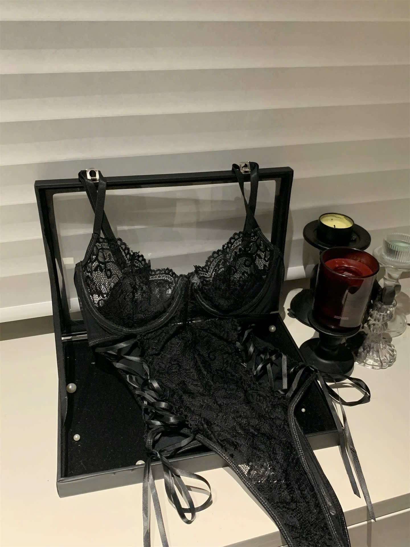 Chất ren cao cấp mỏng nhẹ, co giãn êm ái, kết hợp cùng chi tiết cột dây hai bên hông tạo điểm nhấn đầy cuốn hút. Mỗi nút thắt không chỉ giúp điều chỉnh vừa vặn mà còn gợi lên nét “hờ hững” đầy mê hoặc, khiến tổng thể trở nên sống động và khó rời mắt.