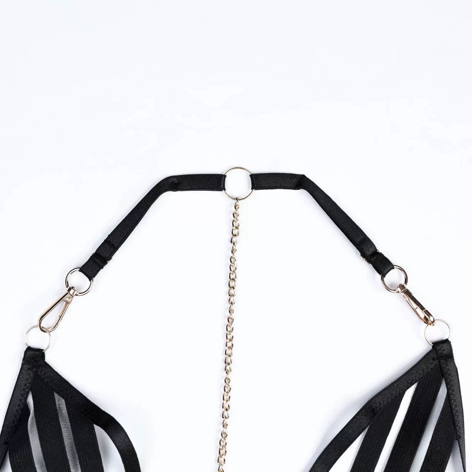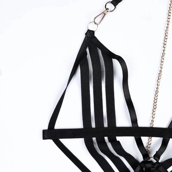 Điểm nhấn độc đáo của Nicky Bodysuit S2459 chính là sự kết hợp táo bạo của dây và xích, tạo nên vẻ ngoài vừa quyến rũ lại đầy cá tính. Những chi tiết xích tinh tế không chỉ làm tăng thêm độ gợi cảm mà còn mang đến một phong cách cực kỳ nổi bật và khác biệt.
