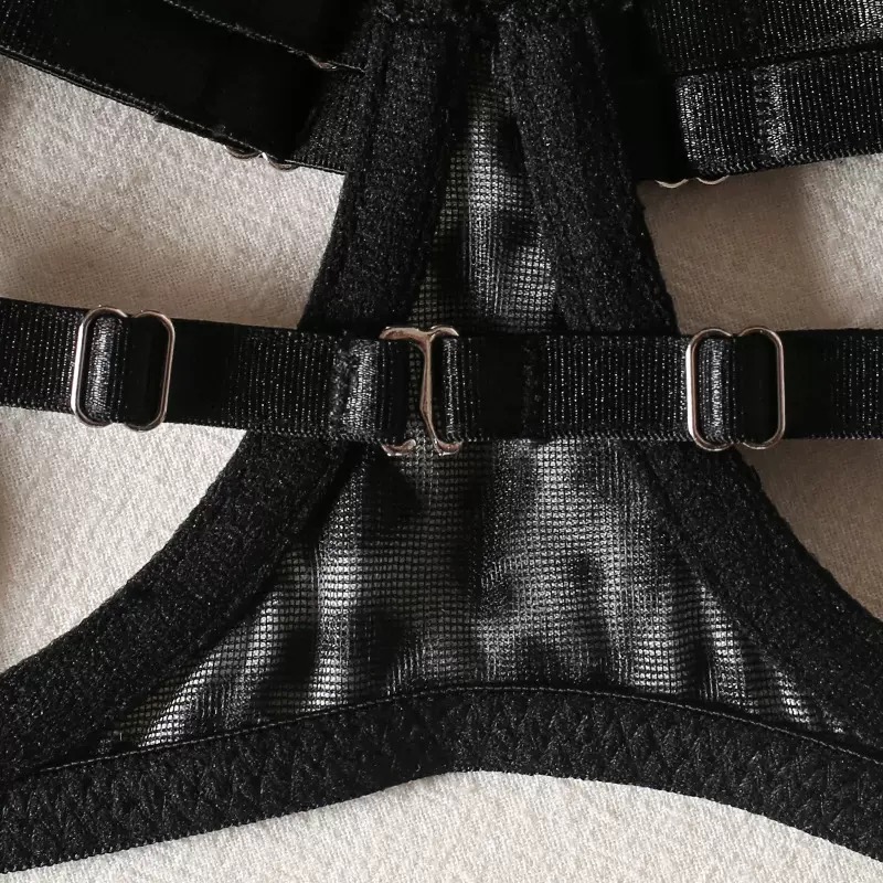Thiết kế 3 món gồm bralette không mút có gọng quần lọt khe và đai lưng phối dây độc đáo tạo nên một tổng thể phá cách gợi cảm cá tính nhưng vẫn đầy tinh tế
