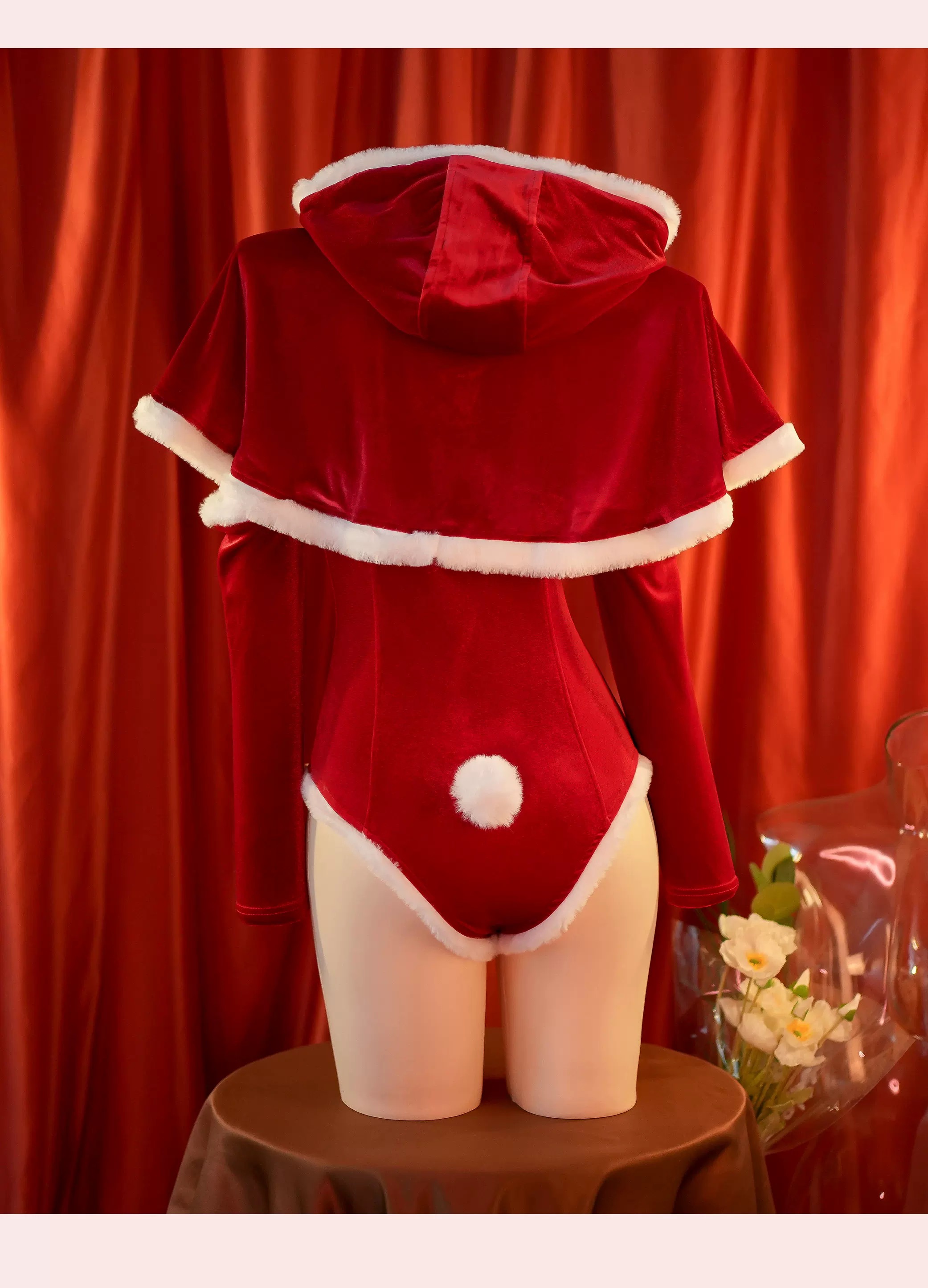 Set gồm: bodysuit nhung đính kèm bông, áo choàng kèm nón, 2 găng tay, 2 tất chân đỏ (LƯU Ý: KHÔNG BAO GỒM TẤT LÔNG TRẮNG và GUỐC).