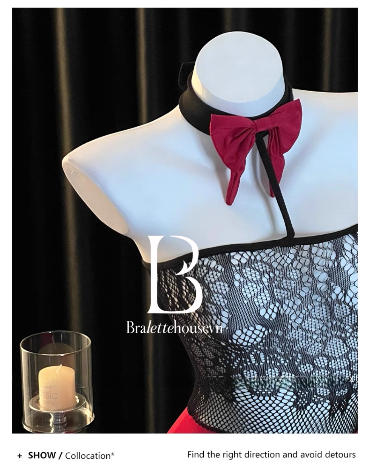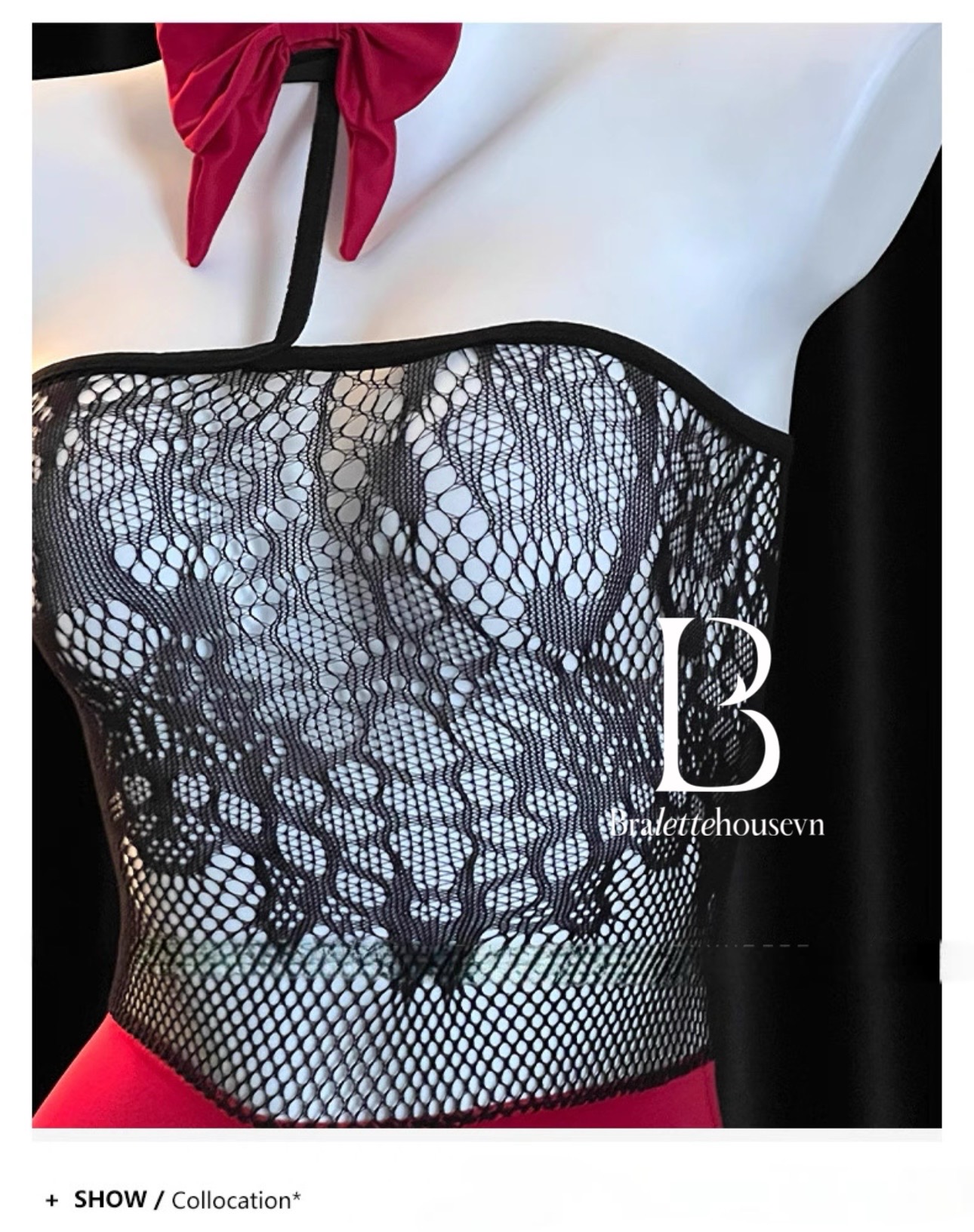 Chi tiết nơ phối màu được thêm tinh tế để tạo điểm nhấn mềm mại. Sự kết hợp giữa chất liệu lưới gợi cảm và chiếc nơ ngọt ngào mang đến sự cân bằng hoàn hảo: vừa táo bạo vừa nữ tính.