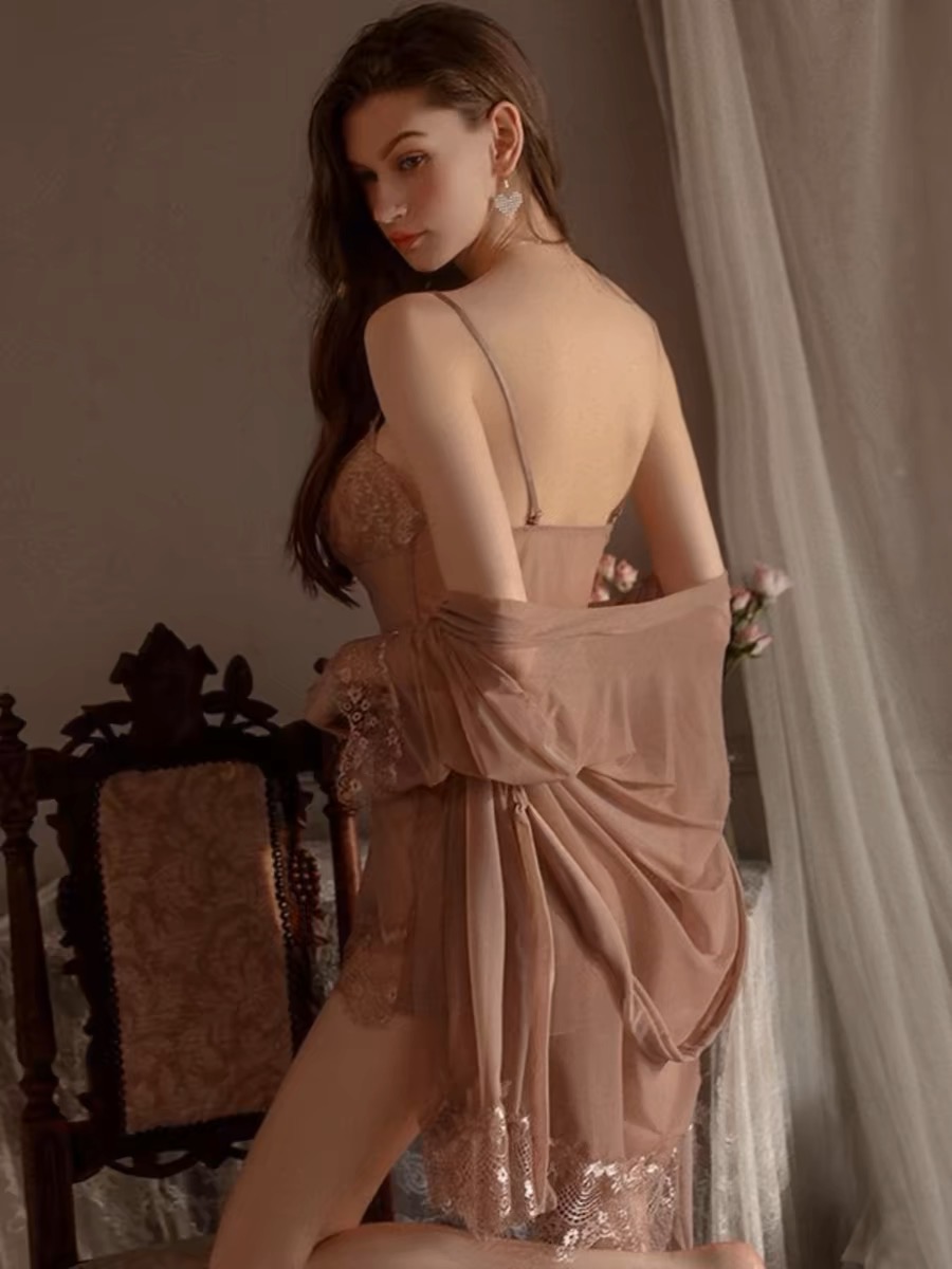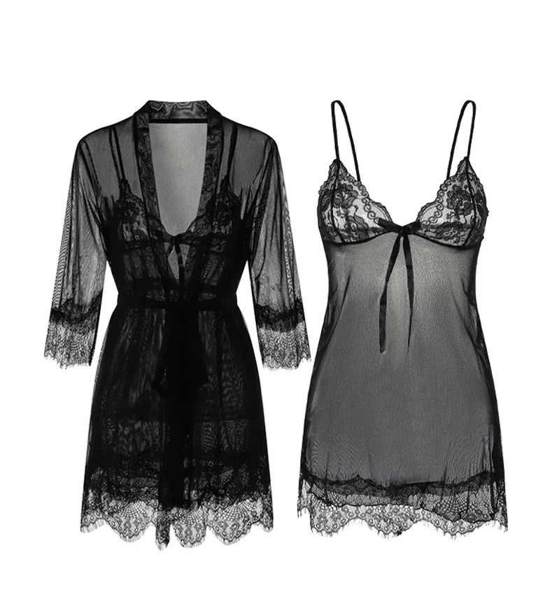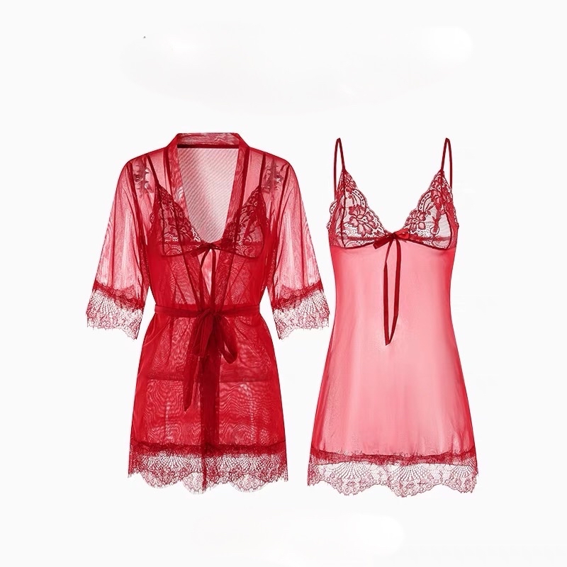 - Gồm choàng và váy ngủ (váy ngủ sẽ có quần lọt khờ-e đi kèm)