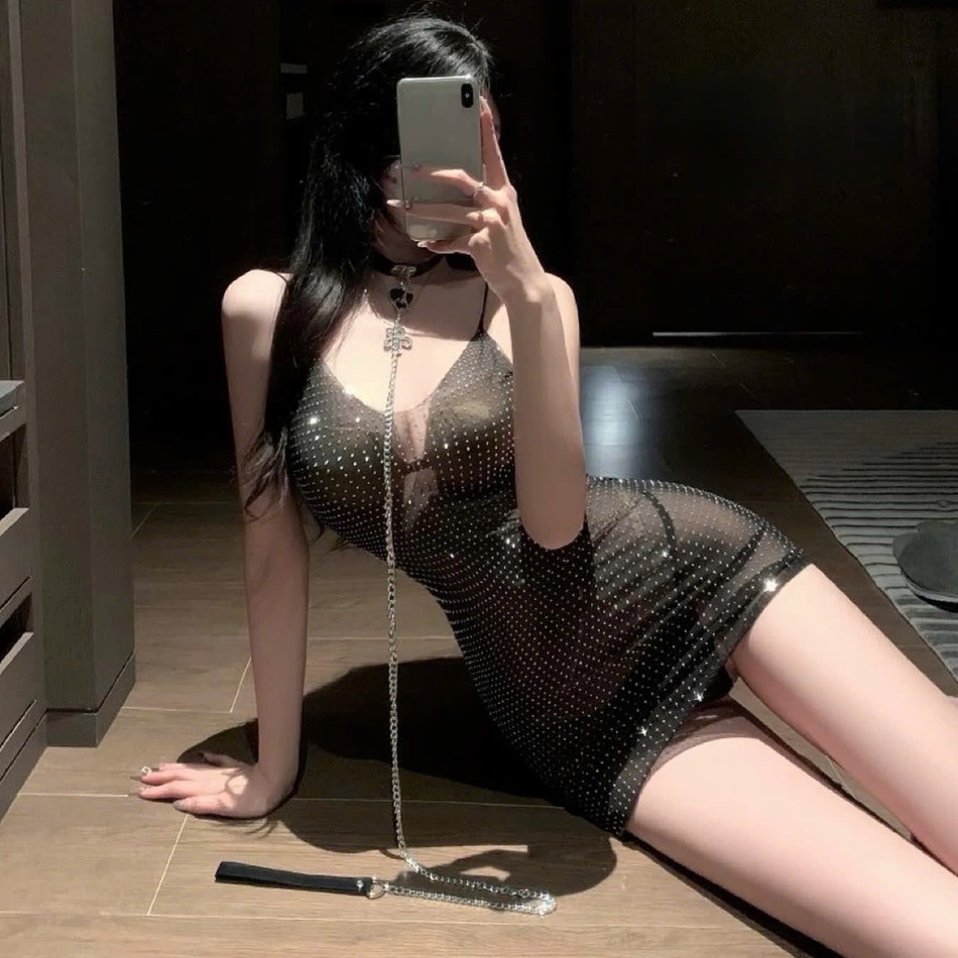 Váy ngủ lấp lánh xuyên thấu Shimmer Dress S2644 mang đến cảm giác vừa tinh tế, vừa quyến rũ như ánh sáng phản chiếu trên làn da. Form suông thoải mái kết hợp cổ đổ mềm mại tạo nên tổng thể nhẹ nhàng nhưng không kém phần cuốn hút – đúng chất Bralettehousevn.