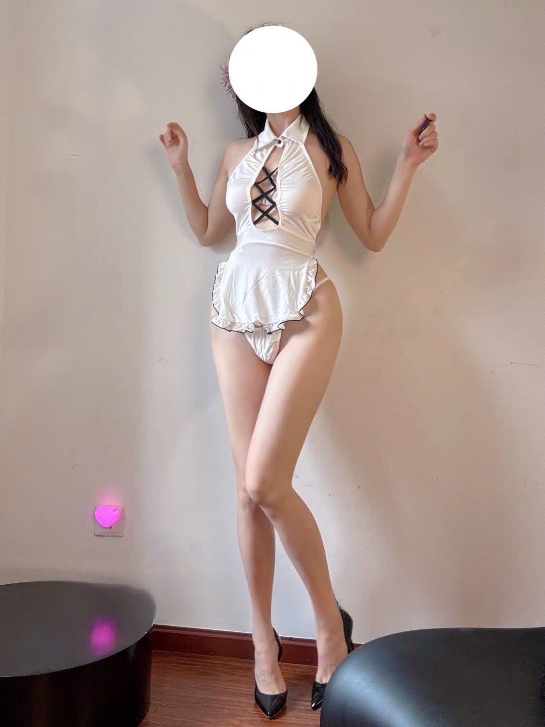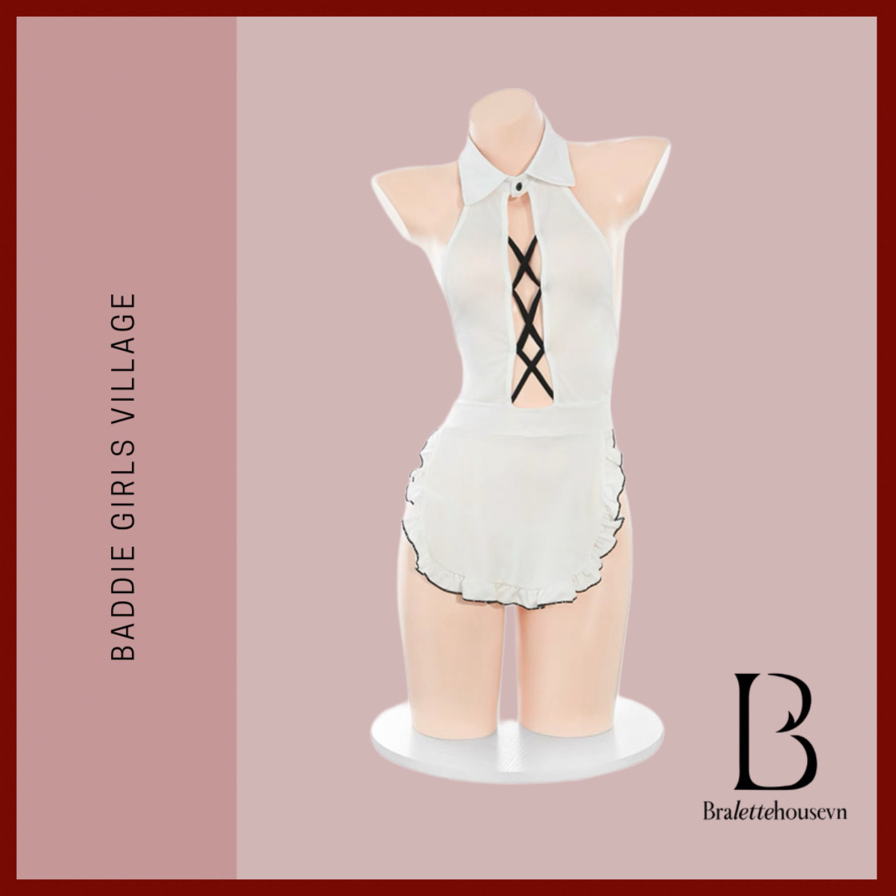 Steady Maid Set S2575 mang cảm hứng từ phong cách Trung Hoa cổ điển, kết hợp cùng kiểu dáng tạp dề đan chéo độc đáo, khoe trọn bờ lưng mềm mại và từng đường cong cuốn hút. Thiết kế hở lưng – xẻ ngực – ôm sát eo, biến nàng thành “nàng thơ” ngọt ngào nhưng cũng đầy khiêu khích.