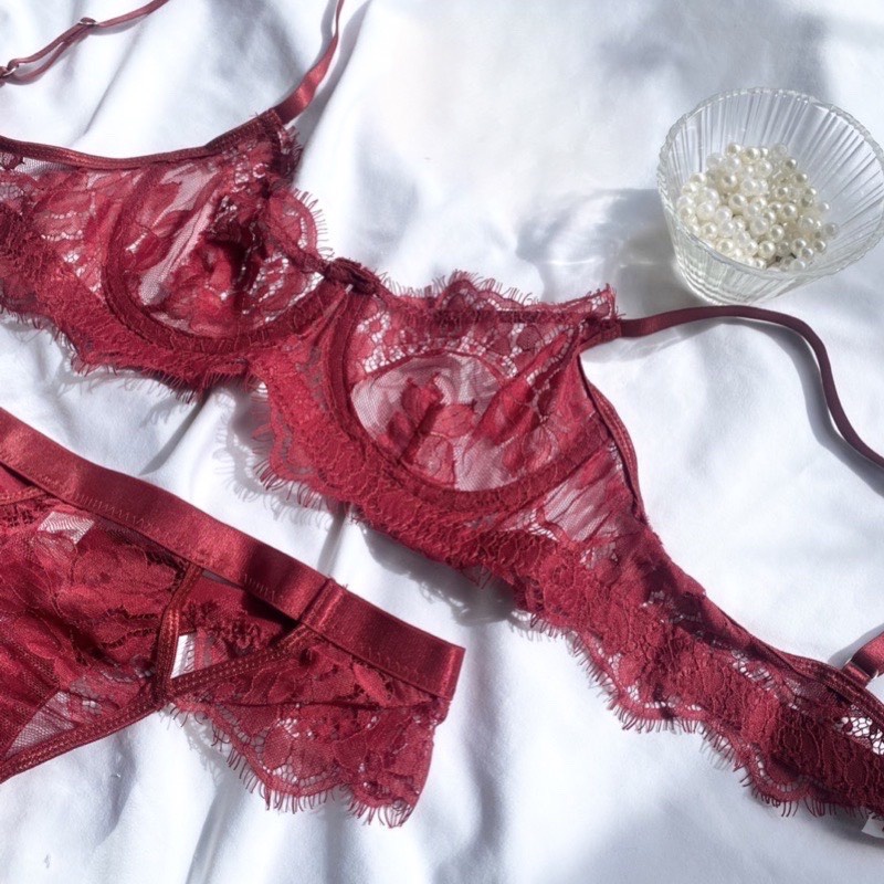 Strawberry Olong Set (Có gọng, không mút),chất liệu ren mềm gợi cảm