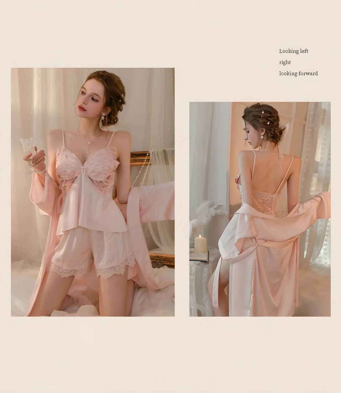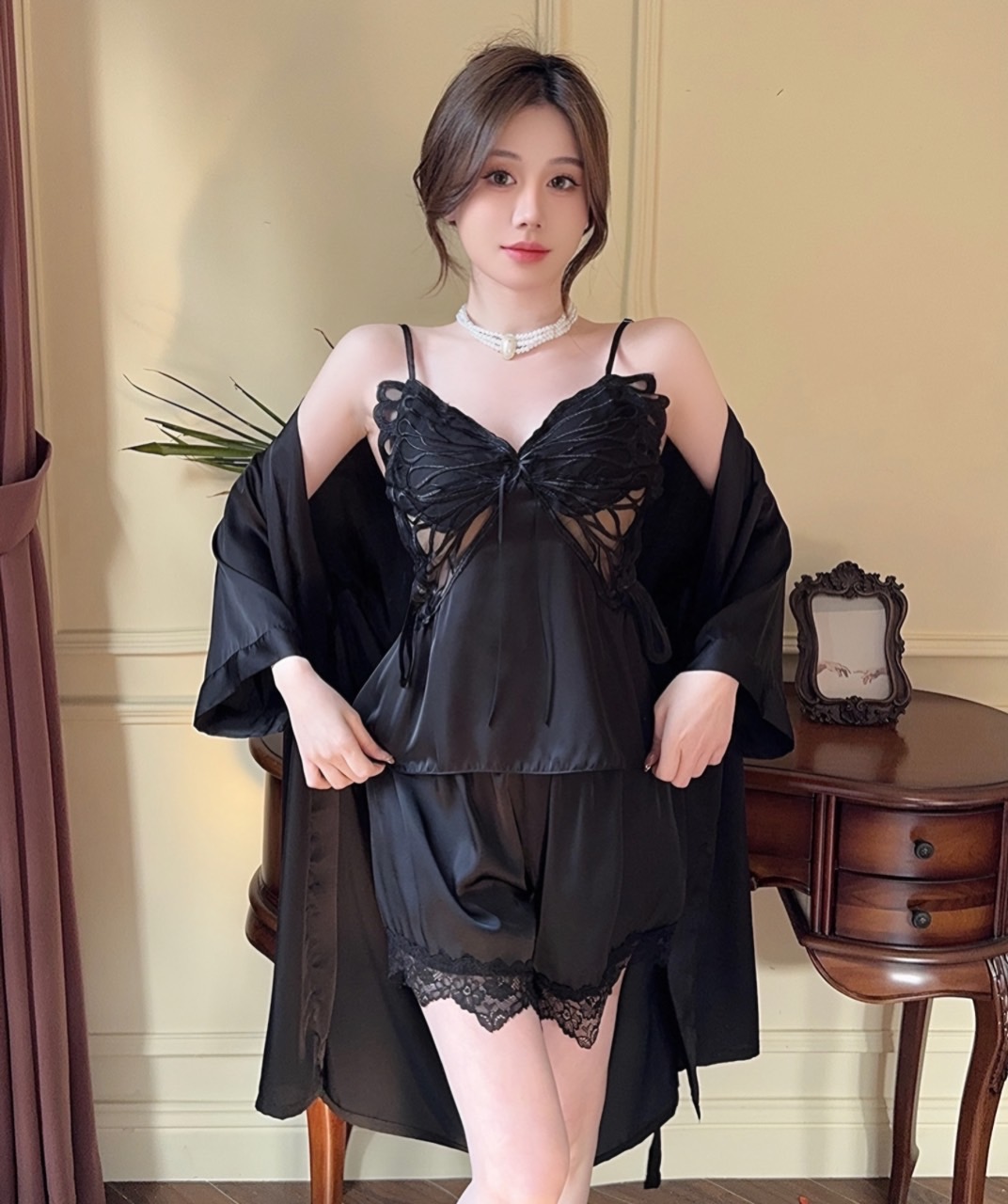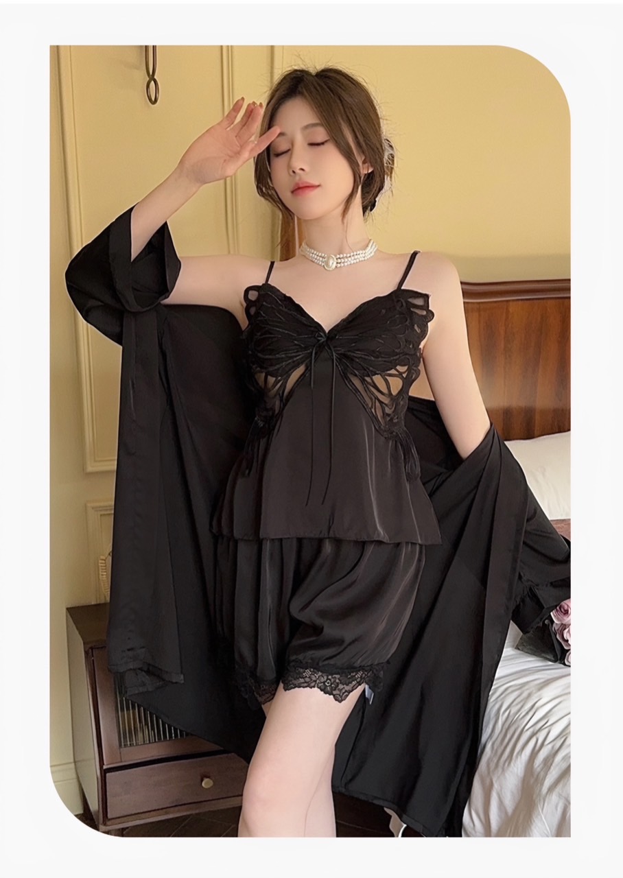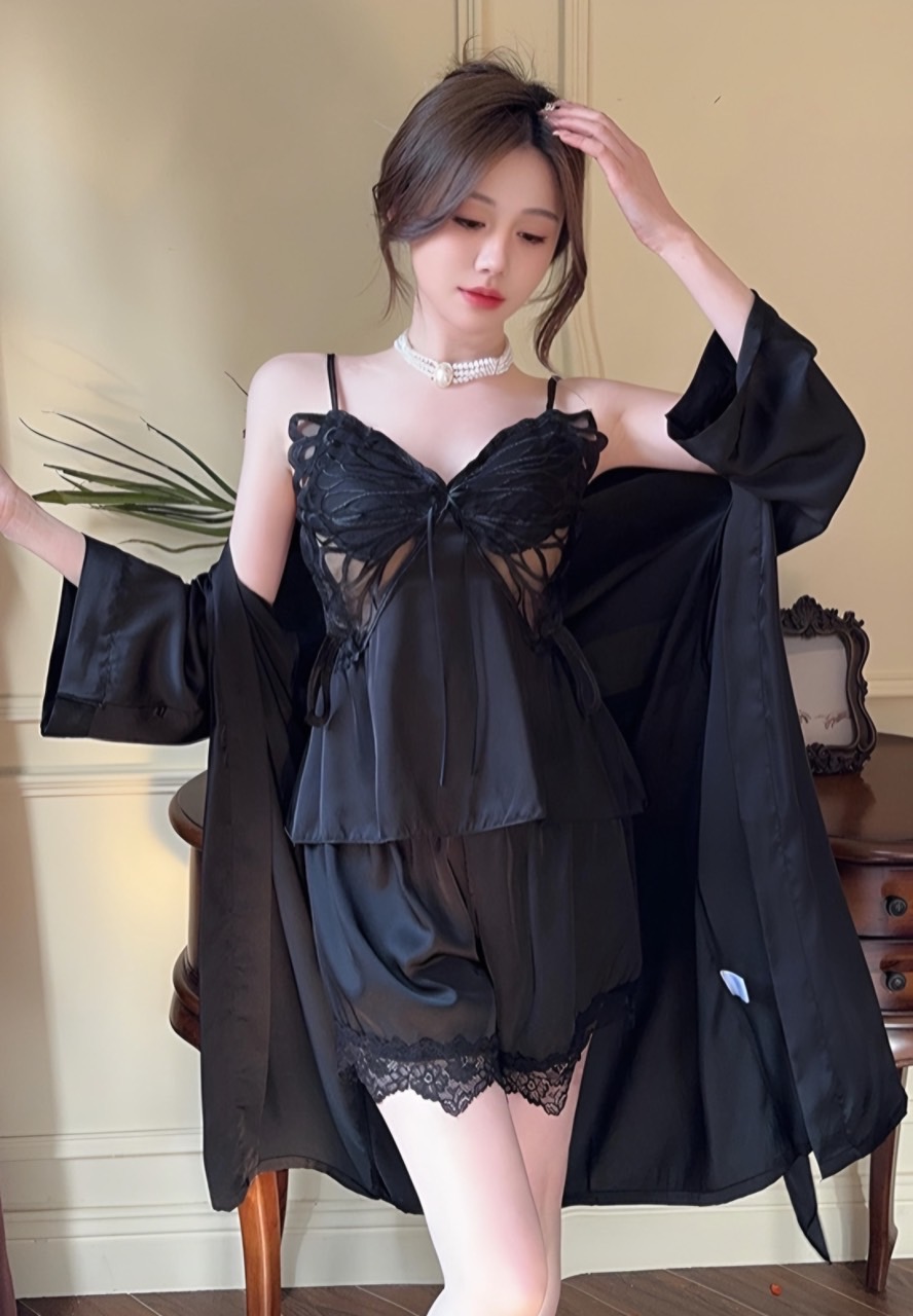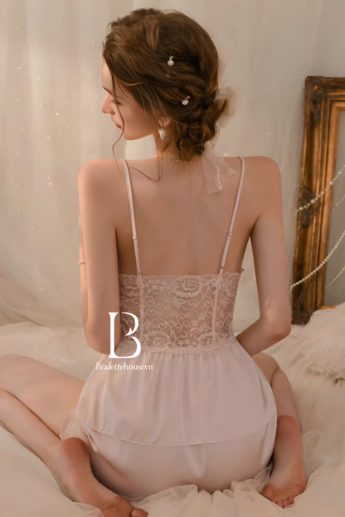Chất satin phối lưng ren thun thoáng mát và co giãn thoải mái.