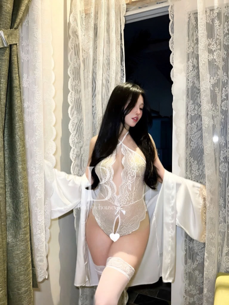 Bodysuit chất ren, freesize < 58kg, ren mềm mại, điểm nhấn phối dây ở lưng tạo hiệu ứng.